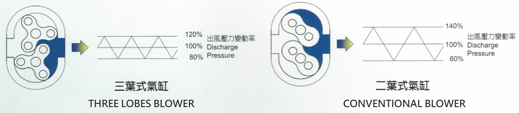 3. At the same rotational speed, the three lobes exhibits less vibration, lower noise, longer life.